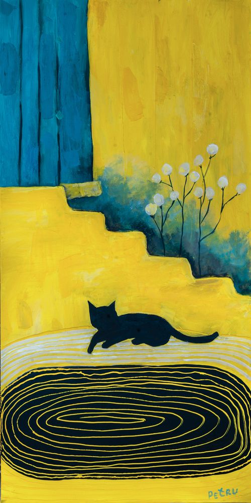 The brushwork and structure evoke the rhythm of film frames: still images holding motion beneath the surface.